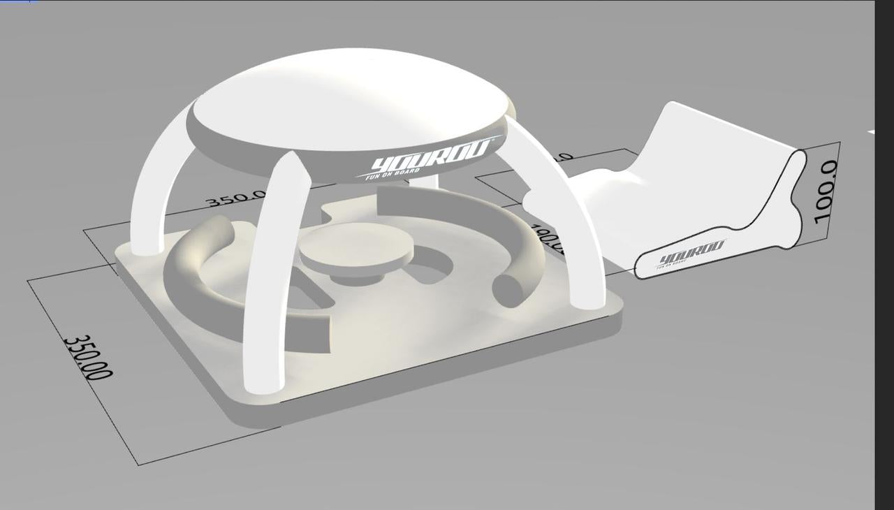 Ilha flutuante: 3,50m x 3,50m x 2,15m (comprimento x largura x altura)